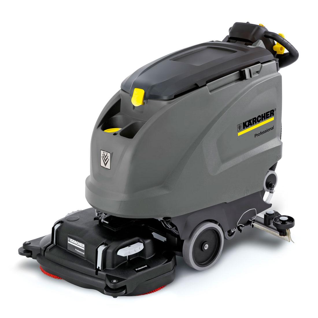 Lavasciuga uomo a terra B 60 W Bp. Con testata della spazzola e le spazzole a disco, pressione di contatto regolabile, 65 centimetri di ampiezza di lavoro, batteria esente da manutenzione (24 V, 180 Ah), unità di trazione e sistema di chiavi KIK per la protezione contro il funzionamento non corretto. Una caratteristica in più: la modalità di eco!efficiency estende la durata della batteria. Sistema di risciacquo del serbatoio per la pulizia automatica dell’acqua sporca, senza alzatina, funzione di auto-fill per un comodo riempimento di acqua pulita del serbatoio. Sistema di dosaggio Dose diretto del detergente. Questa macchina è disponibile con una gamma di attrezzature e funzioni diverse, ad esempio diversi tipi di pile, la versione via cavo o 55 centimetri di ampiezza di lavoro.