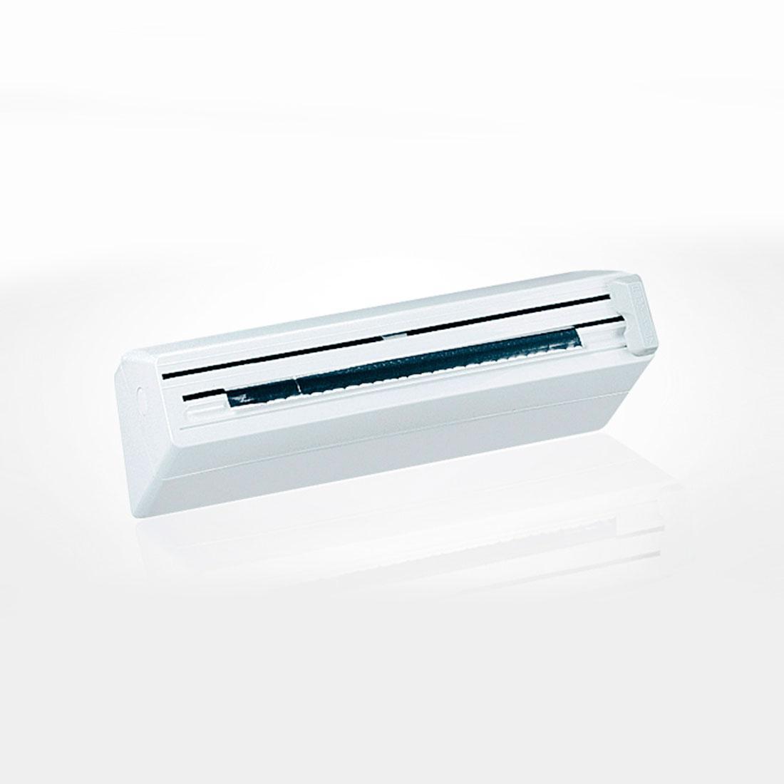 Dispenser per rotolo PELLICOLA trasparente (o ALLUMINIO) dimensione rotolo: mt. 300 (150) x 300/350mm. Colore bianco.