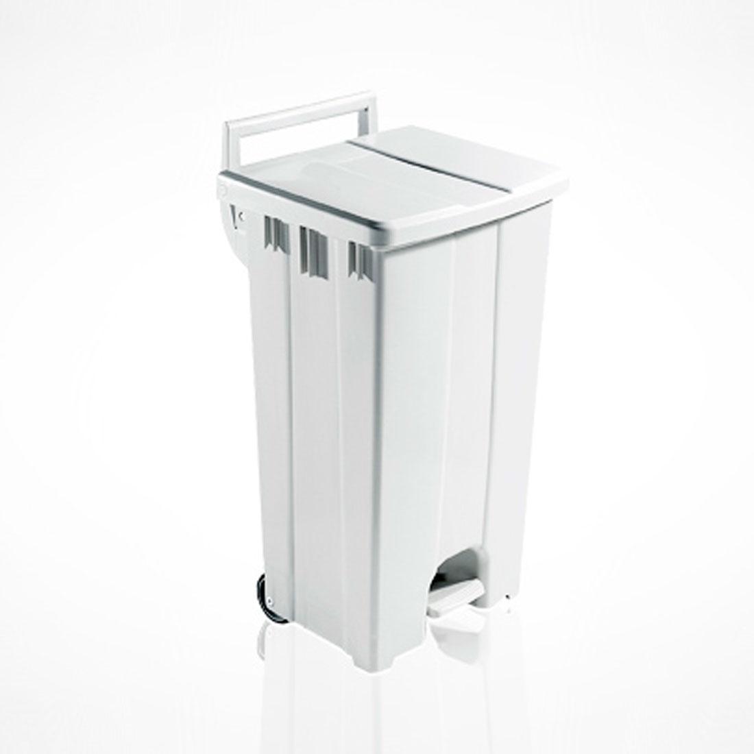 Pattumera a pedale con ruote – capacità lt.90 – totalmente INOSSIDABILE, a norma H.A.C.C.P., colore bianco